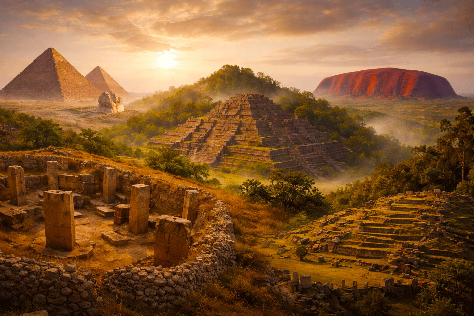 Giza PlateauGoebekli TepeGunung PadangSacsayhuamanToninaUluruHarmonic ZeroThe Seven Nodes Return to Book one Return to Book one